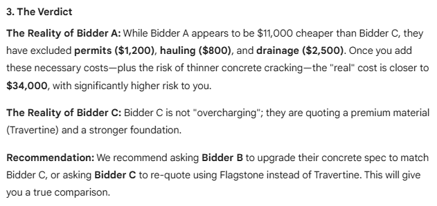 Bid Comparison