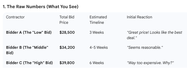 You did your research and selected three contractors to get bids from. They’ve been to your home, listened to what you wanted, took their photos and measurements, now you now have three quotes for the same project, or do you? There’s an $11,000.00 spread in the pricing, how is that possible?.